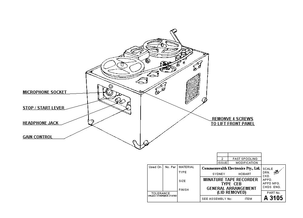 I believe that this is the only Australian tape recorder that had a clockwork motor. NAGRA also made a portable tape recorder with a clockwork motor in the early 1950's,